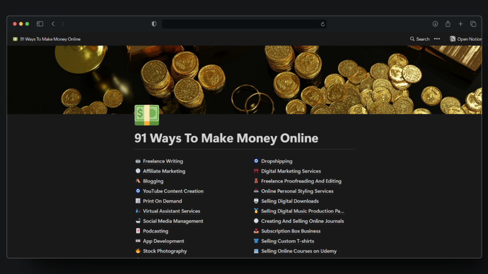 - 91 Money-Making Strategies: Uncover detailed, step-by-step guides on 91 different ways to earn money online. Whether you’re a complete beginner or a seasoned pro, there’s something here for you.