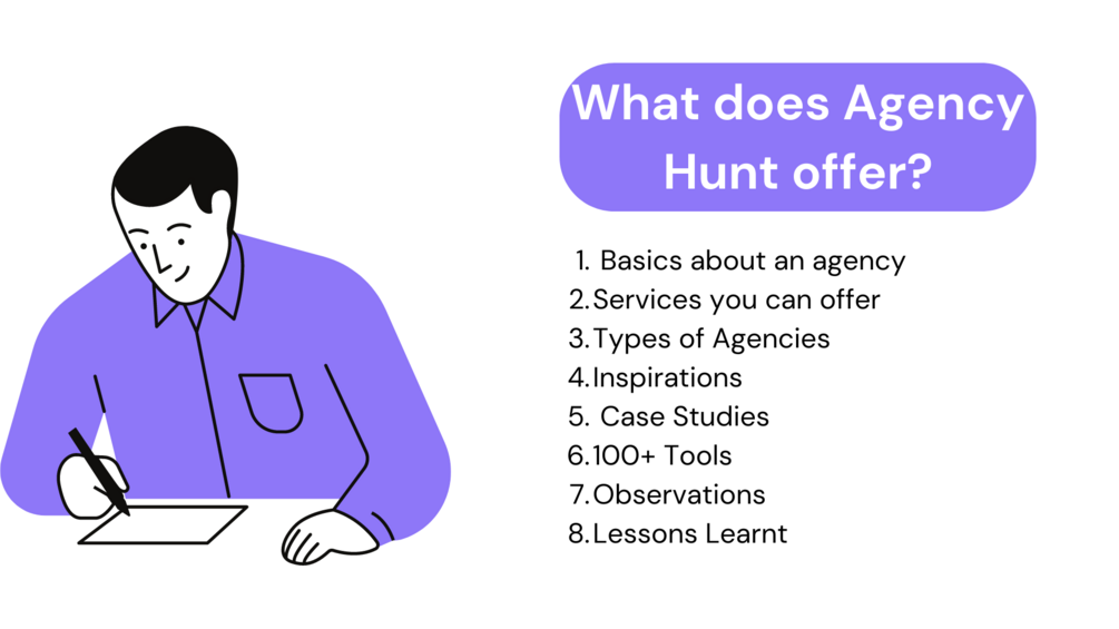 That is the whole purpose of Agency Hunt: to include a goldmine of resources for you to start a successful agency.