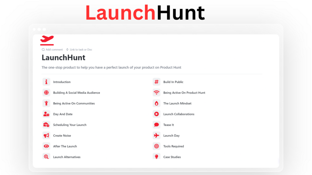 We present to you LaunchHunt - the ultimate guide to skyrocket your product to Product Hunt fame!
