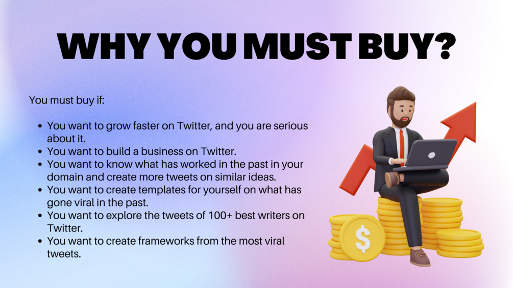 If you are someone who wants to grow seriously on Twitter, this is a must-buy for you to get inspired by the best writers on Twitter and steal their ideas, writing styles, templates and frameworks.